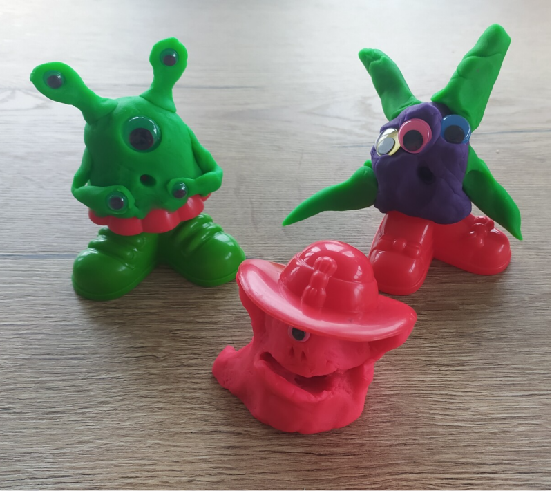 (2) Faire des aliens en pâte à modeler : quelques pots de pâte à modeler + des yeux amovibles. Et voilà, les enfants peuvent inventer leur aliens. Simple et rapide