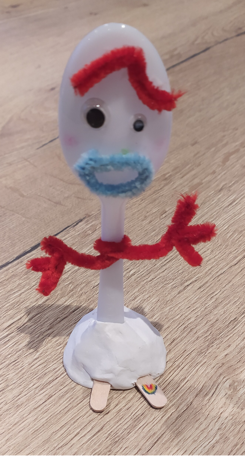- fil chenille loisirs et créatif rouge ( 5,99€ sur Amazon : il y en a également chez Action à 0,69€ dans ce cas vérifiez que vous aurez assez de fils rouges, il en faut un par enfant) (bras et mains de fourchette)