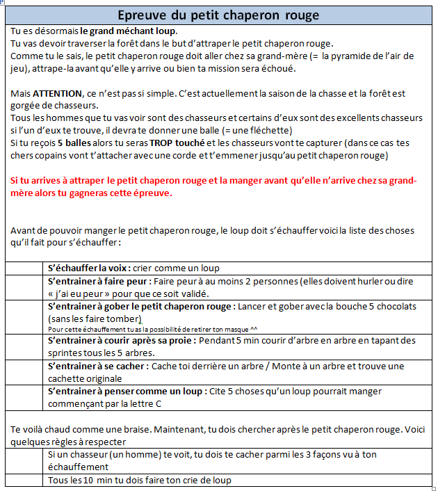 PDF avec les instructions du petit chaperon rouge et du loup avec les modifications (avec ou sans géolocalisation à vous de choisir)