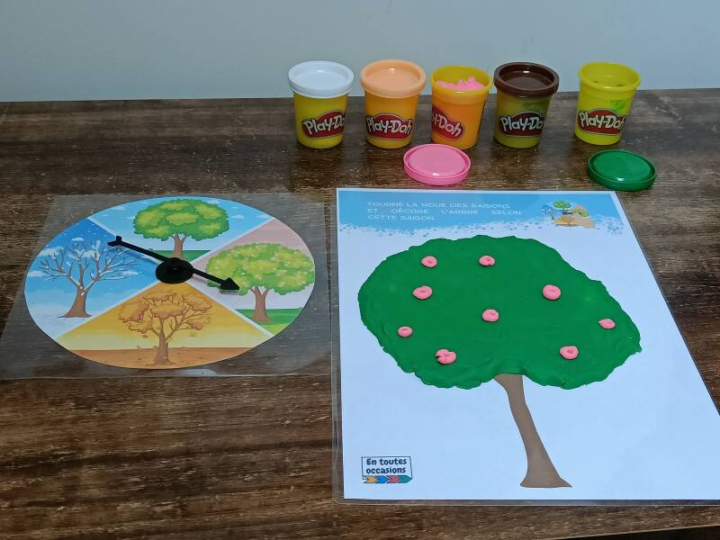 L'enfant doit tourner la roue des saisons afin de décorer son arbre dans la saison indiqué par la roue.