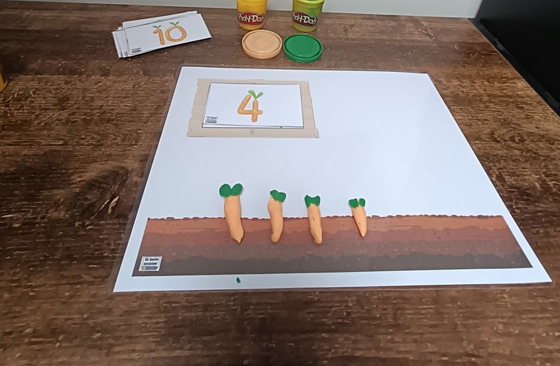 L'enfant va réaliser autant de carotte, il pourra vérifier sa réponse en retournant la carte et associer une carotte à une carotte dessinée pour savoir si le compte y est.