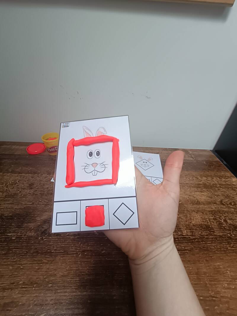 L'enfant peut refaire les formes en pâte à modeler et trouver de quelle forme il s'agit.