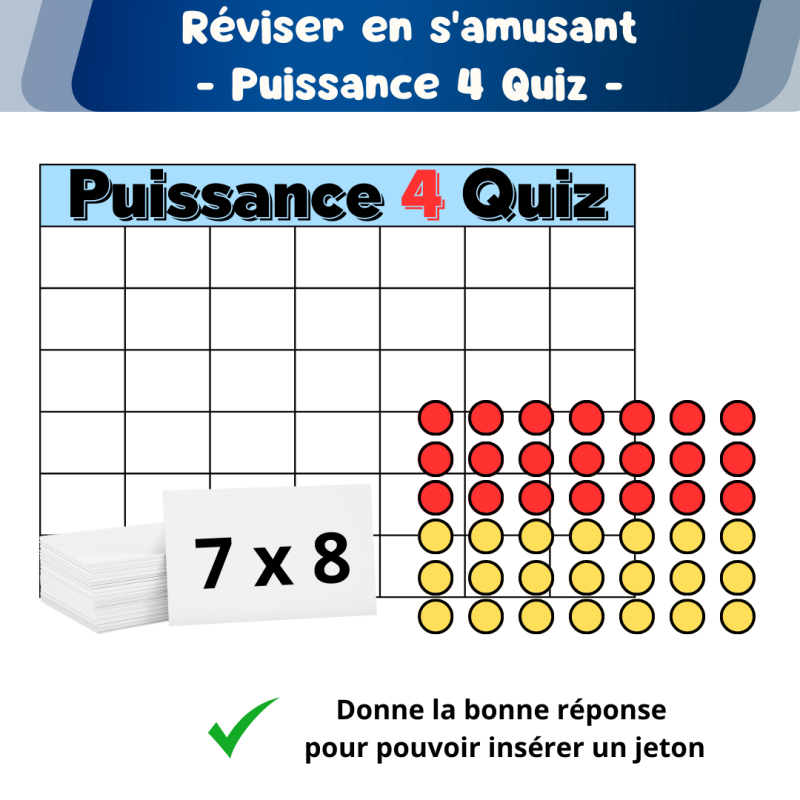 - Quiz rapide : Même principe que le puissance 4 quiz mais cette fois ci, c'est le premier joueur à donner la bonne réponse qui pourra mettre un jeton.