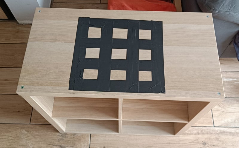 Sur le dessus, j'ai réalisé avec du ruban adhésif noir le tableau (comme dans minecraft)