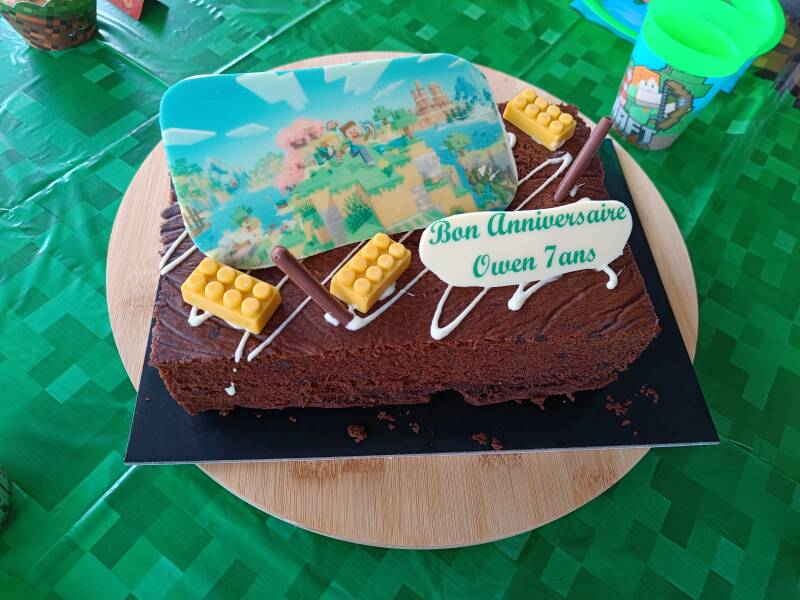 Nous avions commandé le gâteau en boulangerie, on avait juste donné le thème. On était un peu déçu du visuel mais le gâteau était délicieux.