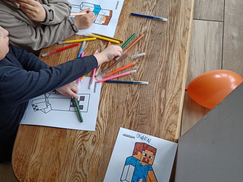 J'avais mis à disposition quelques jeux (bloc aimanté minecraft, Lego, coloriage Minecraft , ballons de baudruche, déguisement + épée gonflable ...)