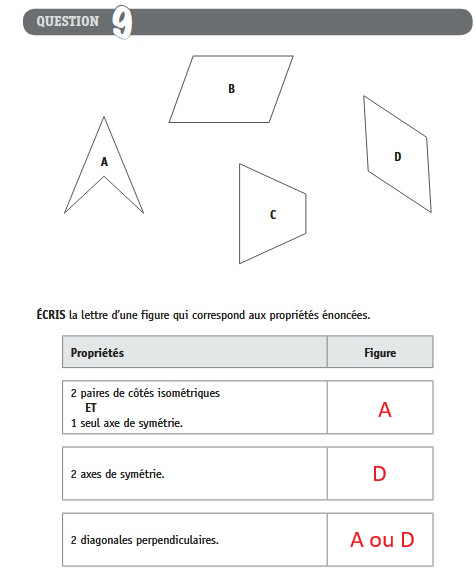 - Le D est un losange , il a bien 2 paires de côtés isométriques mais 2 axes de symétrie.