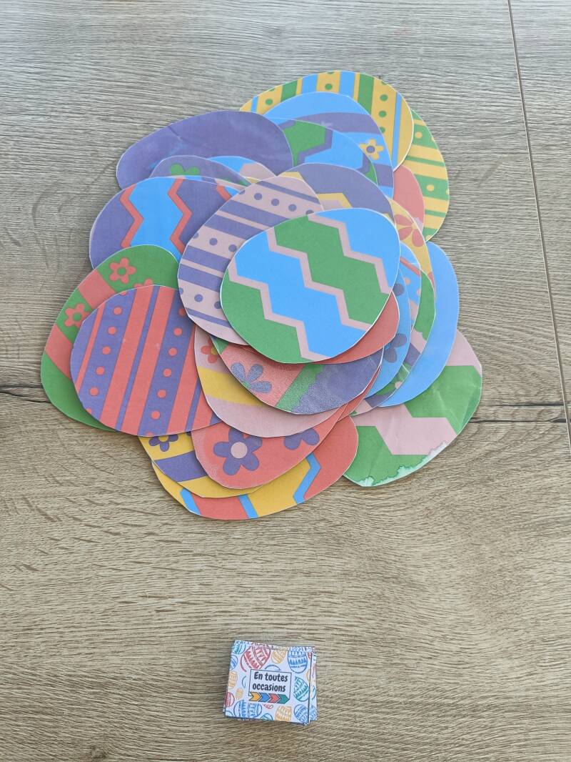 Remarque : On peut également distribuer les œufs face cachée et les distribuer entre les joueurs afin que chacun en cache sans regarder les couleurs.