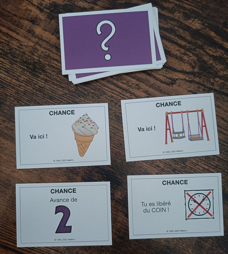 - Les cartes chances de ce niveau sont simples à comprendre, elles sont illustrées pour faciliter la lecture de l'enfant qui ne sait pas lire.