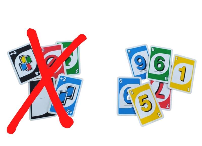 1. Retirez les cartes spéciaux du jeu UNO et gardez uniquement les cartes chiffrées de 1 à 9 (vous pouvez garder le 0 également si vous voulez)