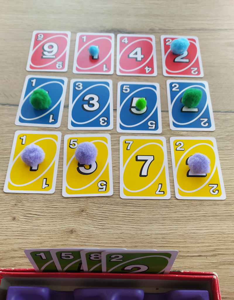 Pas besoin de posséder un mémo pour pouvoir y jouer. Toutes les cartes du UNO sont représentés 2 fois.