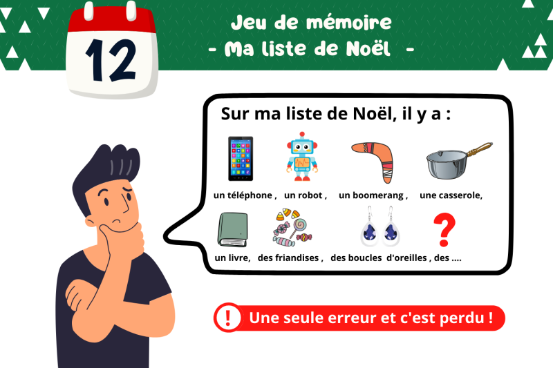 Le joueur suivant doit répéter en ajoutant une nouvelle chose :