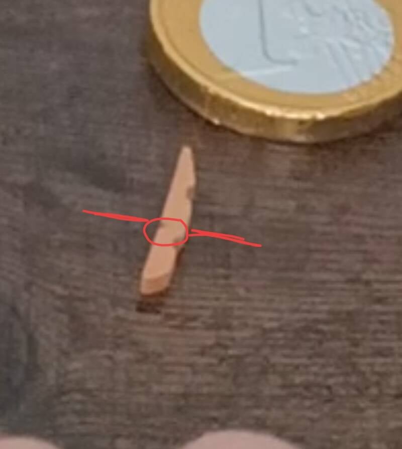 7. Prenez la mini pince à linge orange et démontez -la (vous devez avoir deux parties). Prenez l'une des parties et coupez l'extrémité au niveau du creux de la partie supérieure (voir image).