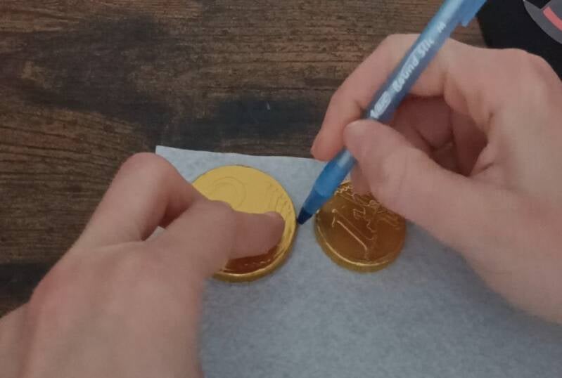 2. Découpez et collez vos cercles sur les pièces en chocolat.