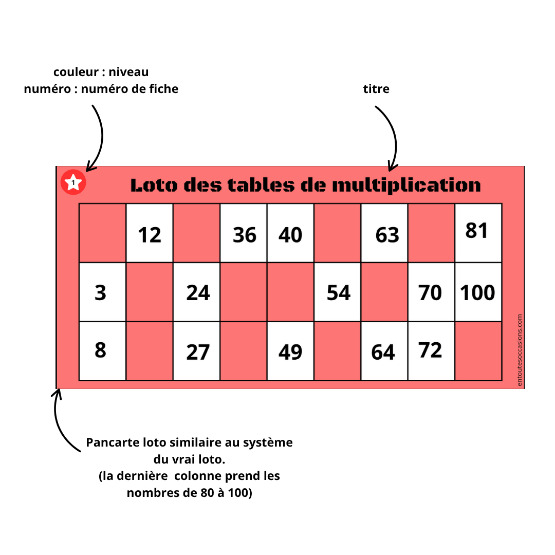 PDF contenant 48 pancartes de loto spéciale "tables de multiplication"Idéale pour réviser l'ensemble des tables de multiplication de 1 à 10 .