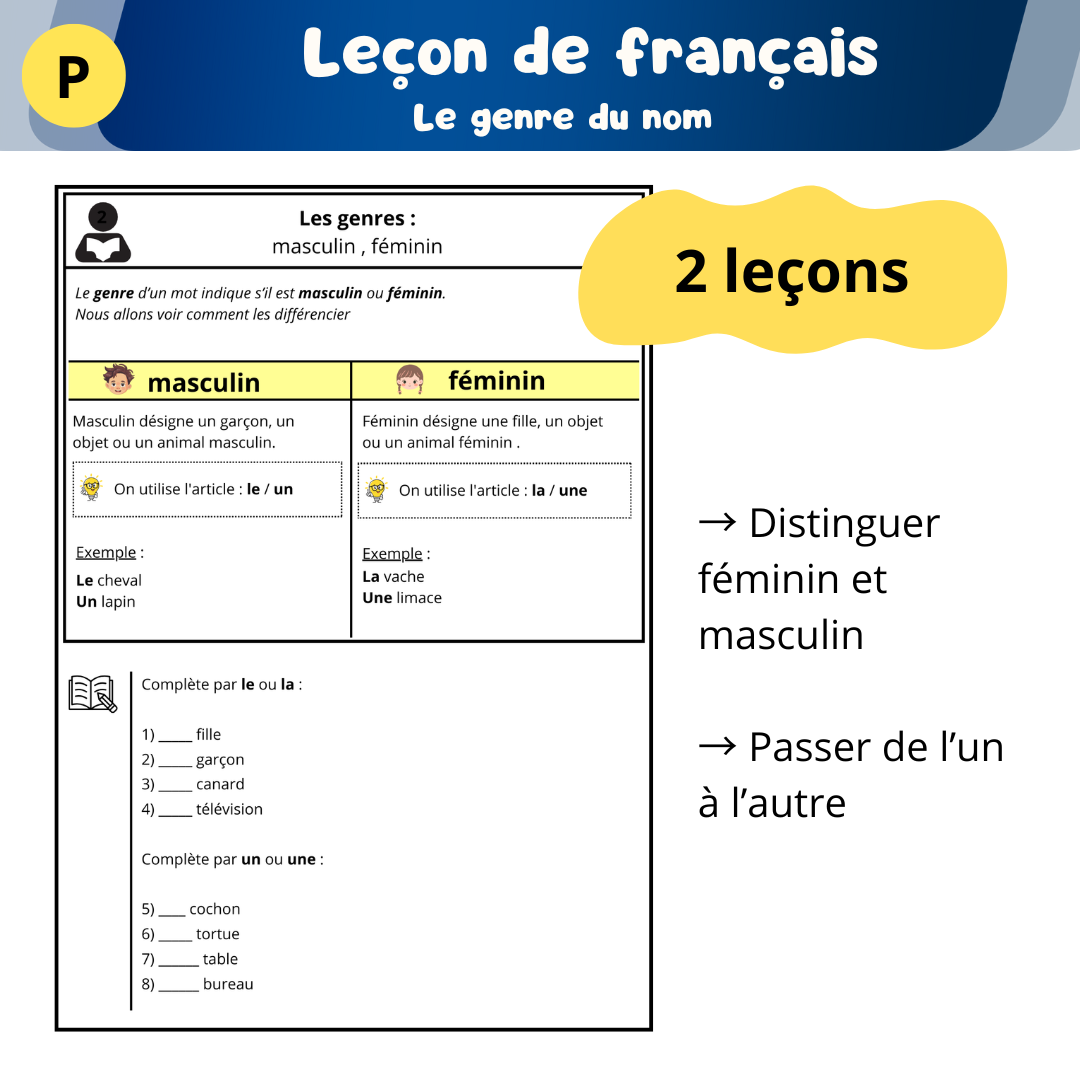 - Découvrir les deux genres : masculin et féminin.
